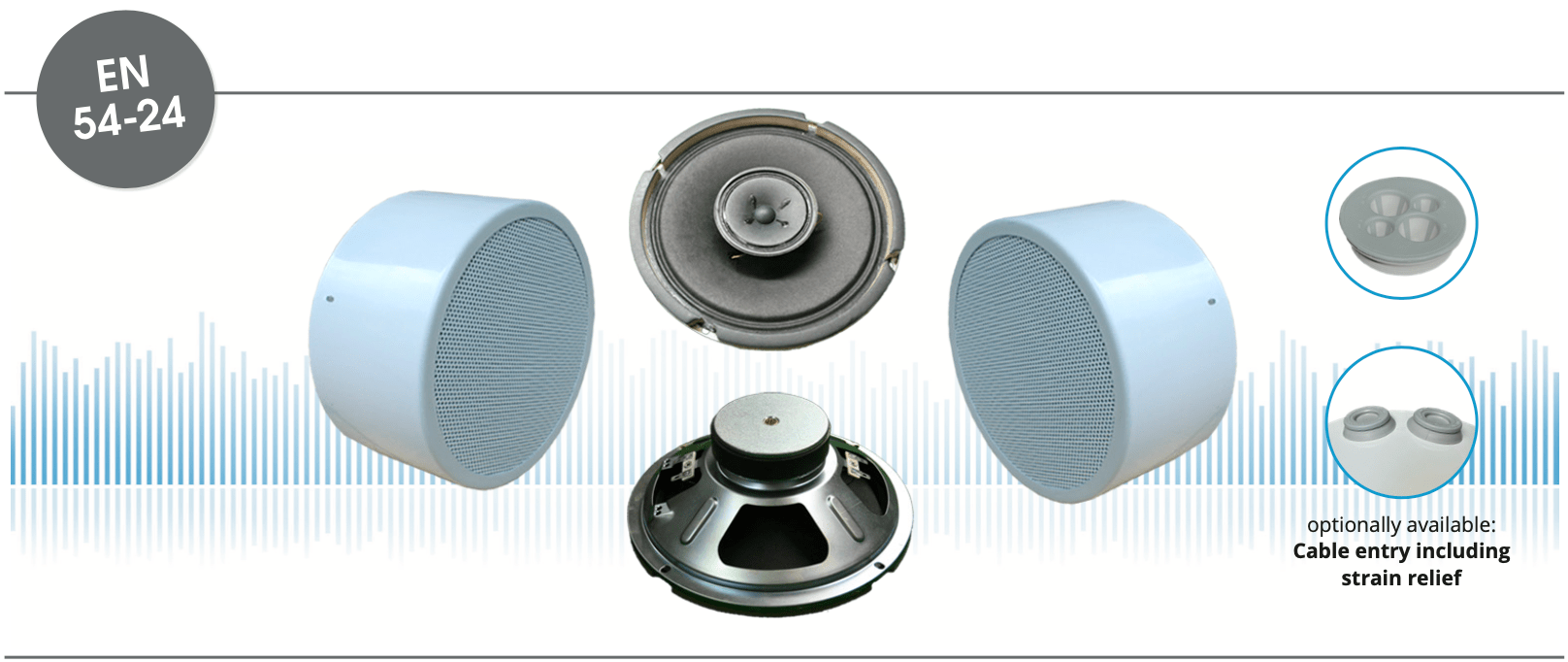 EN 54-24 On-Wall / Ceiling-Speaker in Metal with 2x 30 Watt Power and AB-Dual-Cone-Technique
