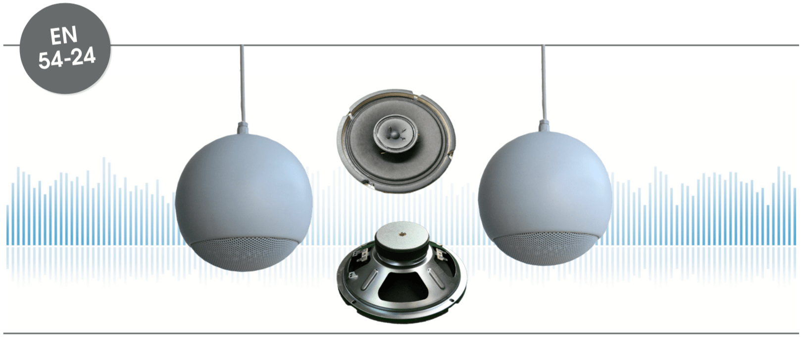 EN 54-24 Kugel-Lautsprecher in Metall mit 2x 30 Watt Leistung und AB-Dual-Cone Technik